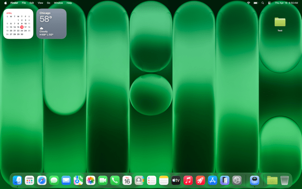 Apple has a feature that allows you to click the wallpaper and move all open apps off of the screen. You can choose to do this all of the time, or only in Stage Manager. I don’t recommend Stage Manager to my clients, and I typically recommend turning off the click wallpaper to show desktop feature. In this case my client likes this fly away feature, and sees it as a bit of whimsy. Even though they prefer to keep the Dock and Menu Bar always visible. So we’ll leave it on.