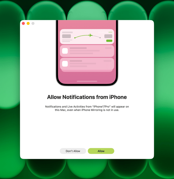 I mentioned an issue earlier with iPhone notifications flowing through to the MacBook Neo. This is a feature I use myself. It’s set up through iPhone Mirroring, which you have to open at least once in order to set up.