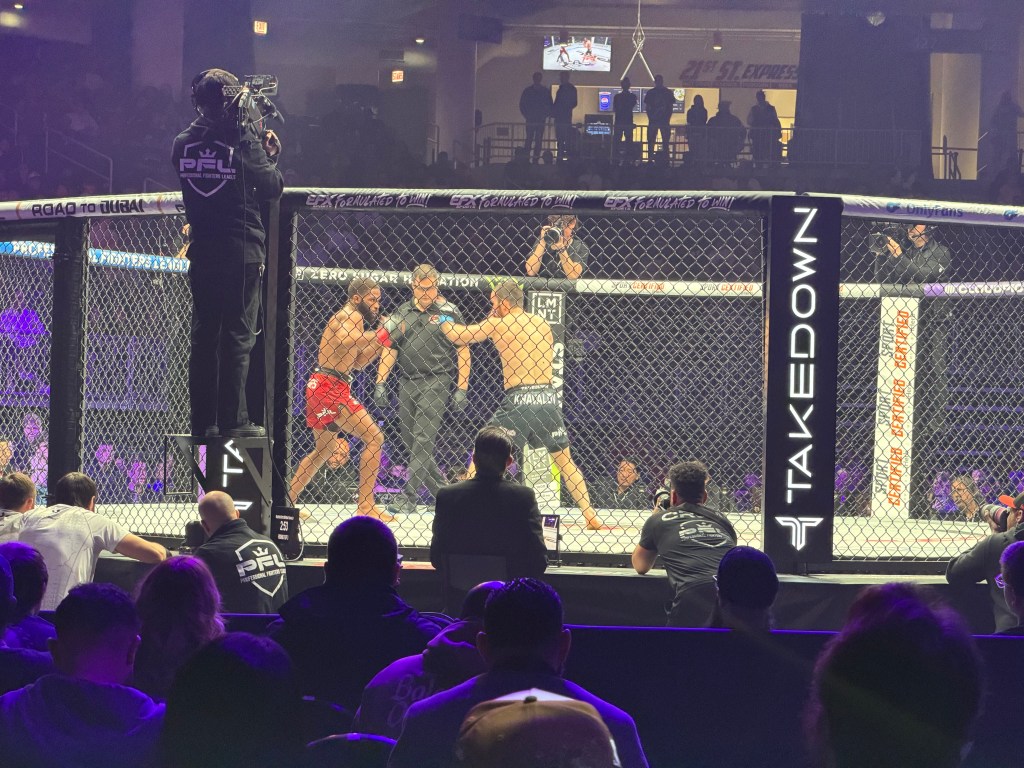 Life is an adventure. So grab something new when it comes your way. My son-in-law is a producer for The Professional Fighters League and their most recent event was tonight. He swung me a ticket. I swung down to catch the act.