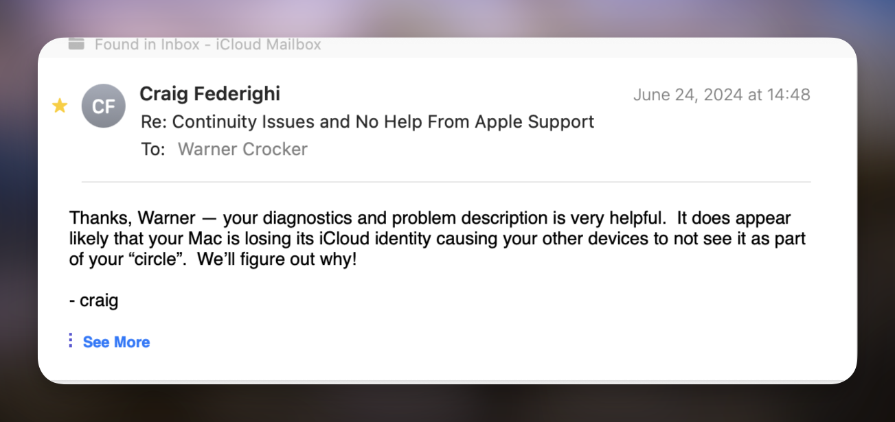 That said there are some other improvements in iOS 18 and macOS Sequoia worth mentioning. I’m going to talk about those in combination, because new features increasingly blend across device platforms via Continuity. Speaking of, I’m glad I finally got my Continuity headaches solved in 2024. Though it took an intervention from Craig Federighi.